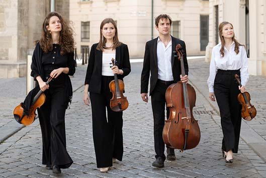 Das Arnold Schönberg Center (Wien) schreibt ein Gewinnspiel aus: Beantworten Sie die Frage und gewinnen Sie 2 x 2 Karten für das Konzert des Ineo Quartet am 28. Januar 2026. Aus welchem Jahr stammt Arnold Schönbergs Vorschlag zur Schaffung von Synergien zwischen den Künsten und Wissenschaften? Ein »Forum für Kunst und Ästhetik« sollte Entwicklungspotenziale im Dialog zwischen Musik, Literatur, Bildender Kunst, Philosophie, Psychologie, Soziologie, Physik und weiterer Wissenschaftsdisziplinen fördern sowie Stagnation im Fortschritt entgegenwirken. Wenige Monate später wurde sein jüngster Sohn Lawrence Adam geboren, dessen Werdegang als Mathematiker und Musikverleger die Visionen seines Vaters einlöste. Antwort an ne********@********rg.at, Einsendeschluss: 19. Januar 2026. Die Gewinner:innen werden per E-Mail verständigt. (Foto: Ineo Quartet © Sofija Palurovic)