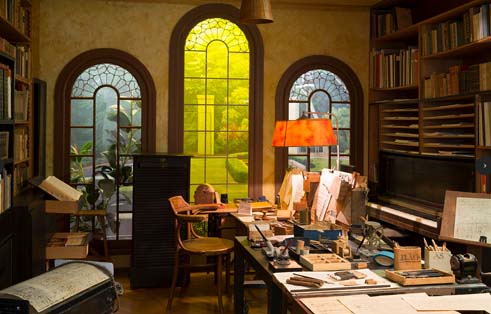 Die Ausstellung Zu Gast bei Arnold Schönberg im Arnold Schönberg Center Wien vom 11. März 2026 bis 19. Februar 2027 präsentiert Arnold Schönberg (1874–1951) in  Hausbesuchen. Ein Jahrzehnte umspannendes Gesamtwerk entfaltet sich entlang von Homestories aus Schönbergs Wohnsitzen in Wien, Berlin, Mödling, Boston und Los Angeles. Exponate aus dem Archiv des Vielbegabten dokumentieren den Komponisten, Musiker, Maler, Lehrer, Schriftsteller, Familienmenschen und Gastgeber. Bild: Arnold Schönbergs Arbeitszimmer in Los Angeles, 116 North Rockingham Avenue, Brentwood Park (© Hannes Böck)